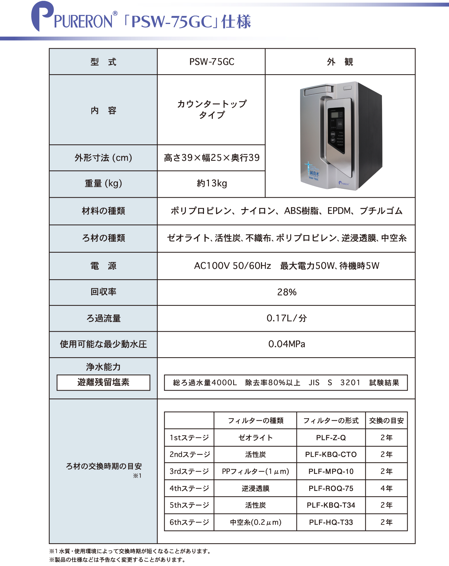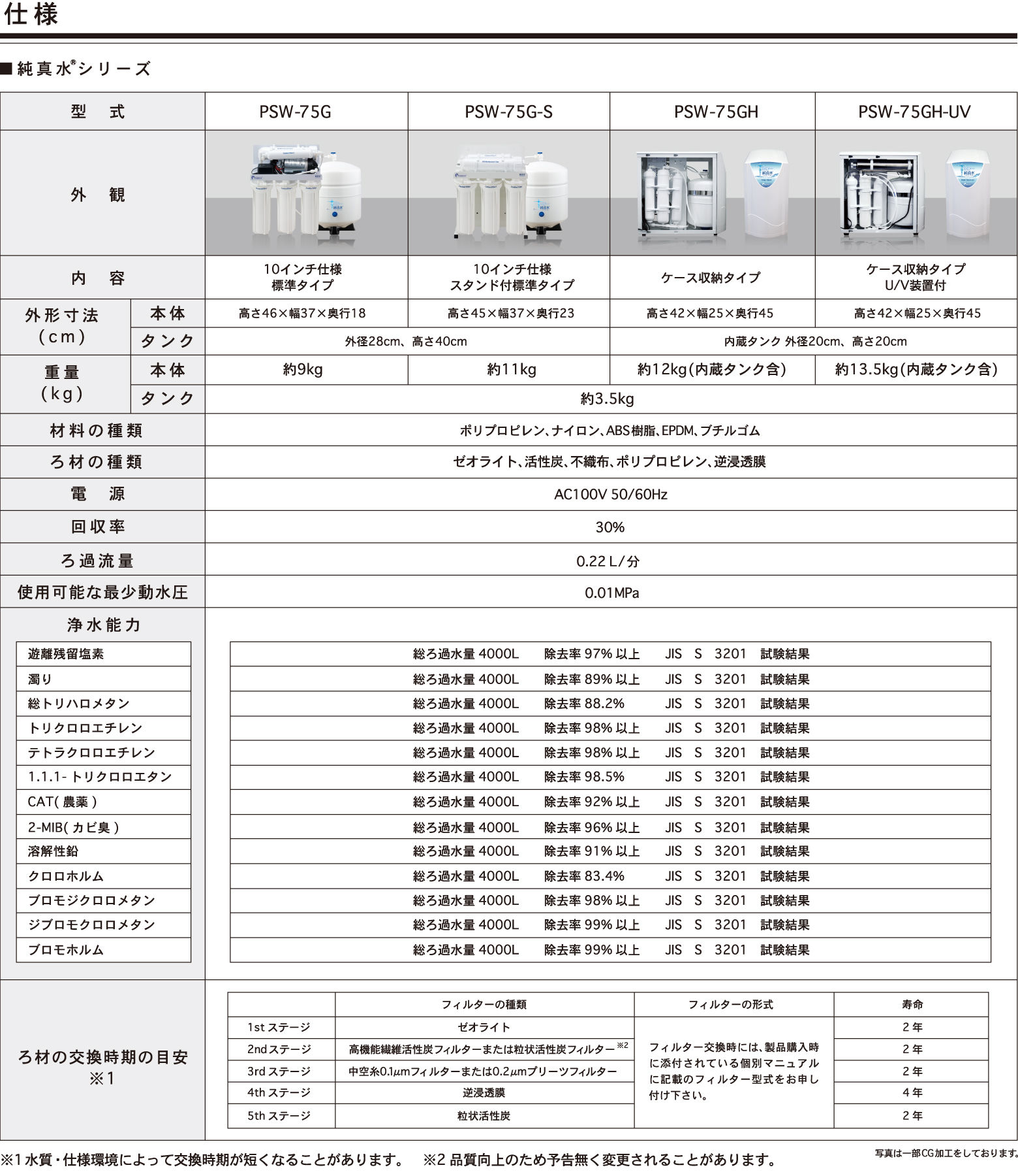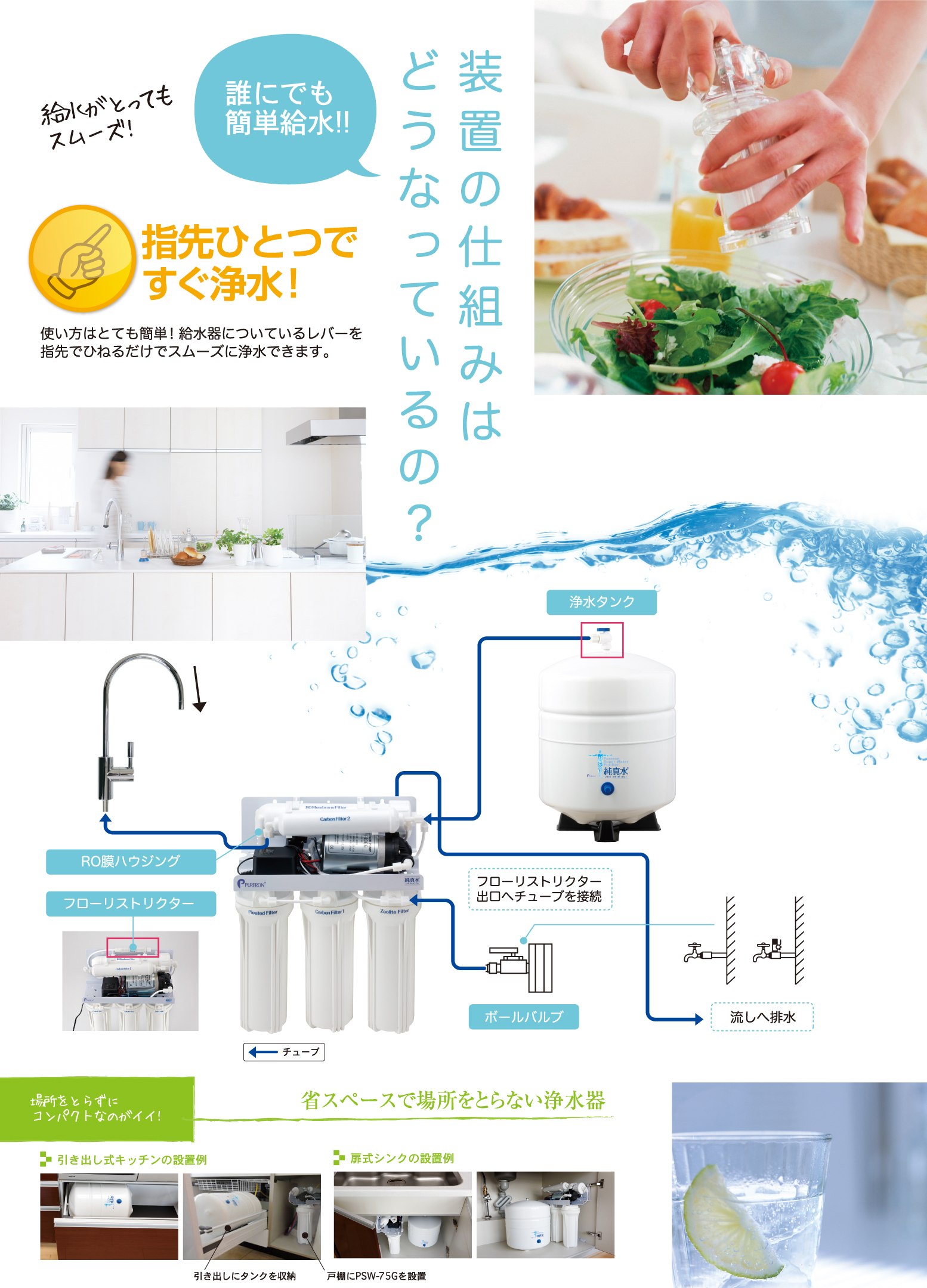 純真水逆浸透膜(浄水器) カウンタートップタイプ純真水[PSW-75GC] PSW-75GC標準価格 ¥173,800(税込)▼販売価格¥139,040(税込) アンダーシンクタイプ純真水[PSW-75Gシリーズ]